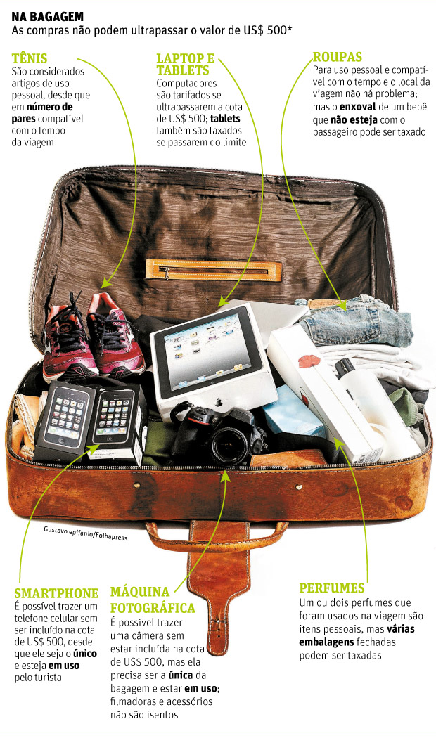 Atenção: Comprou no free shop do Brasil quando estava saindo do país ou em uma loja franca no exterior? Os produtos entram na cota do que você poderá comprar fora do país.